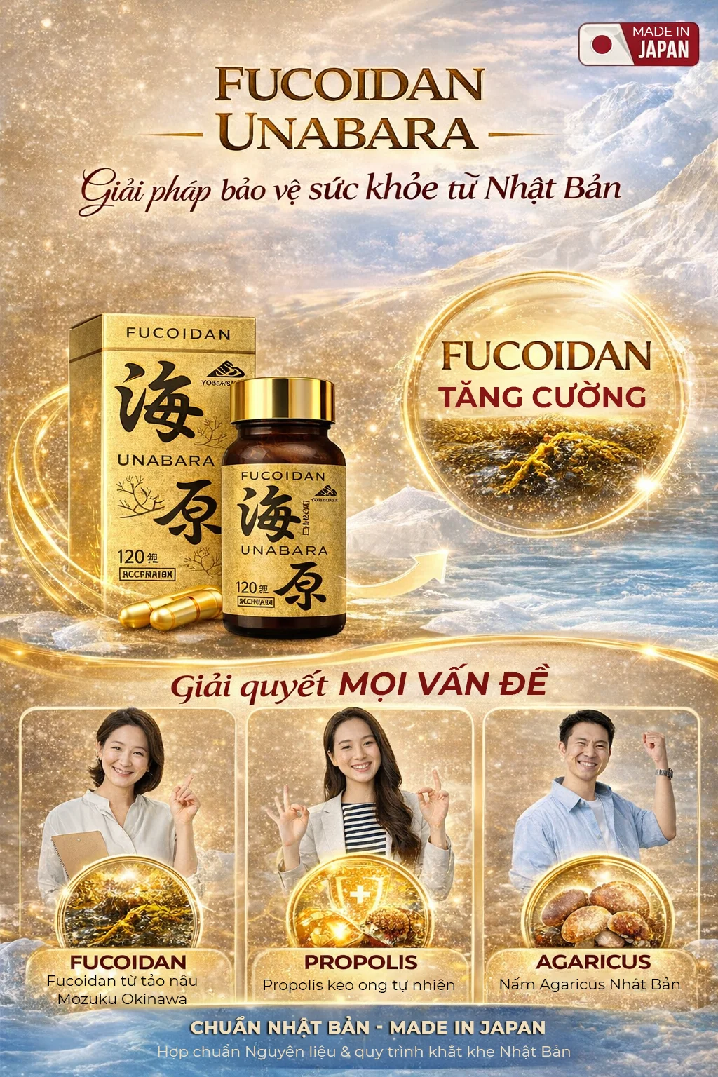 • Fucoidan từ tảo Mozuku vùng biển Okinawa.