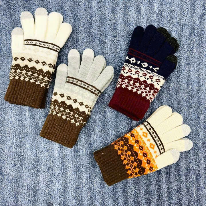 Sự phối hợp giữa các dải hoa văn bông tuyết và hình học tạo nên chiều sâu thị giác, giúp đôi tay trông thon gọn hơn.