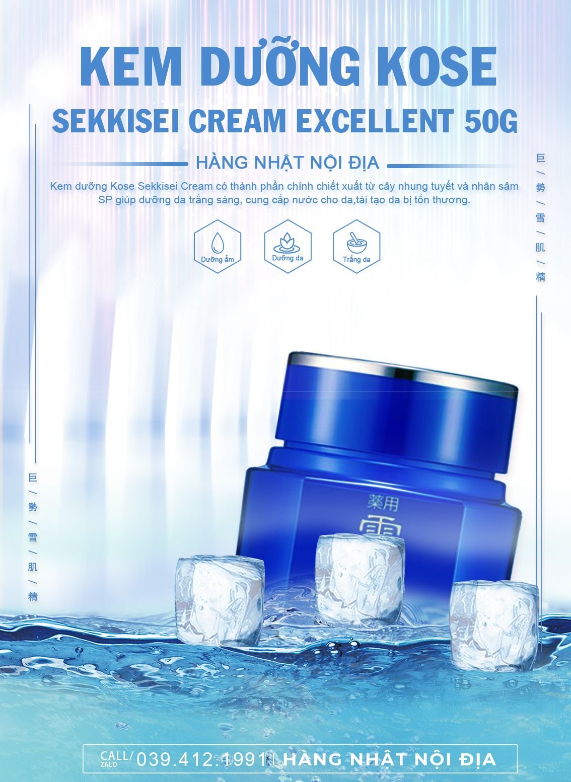Kem dưỡng Kose Sekkisei CREAM EXCELLENT thuộcdòng sản phẩm có thành phần thảo dược, dành cho mọi loại da. Chiết xuất từ cây nhung tuyết cung cấp nước cho da, nhân sâm,…Sản phẩm giúp tái tạo da. Vì vậy, chỉ cần sau một đêm, bạn sẽ sở hữu ngay một làn đẹp hoàn hảo – đủ độ ẩm, săn chắc, cấu trúc da đẹp và rạng rỡ trẻ trung như mong ước.