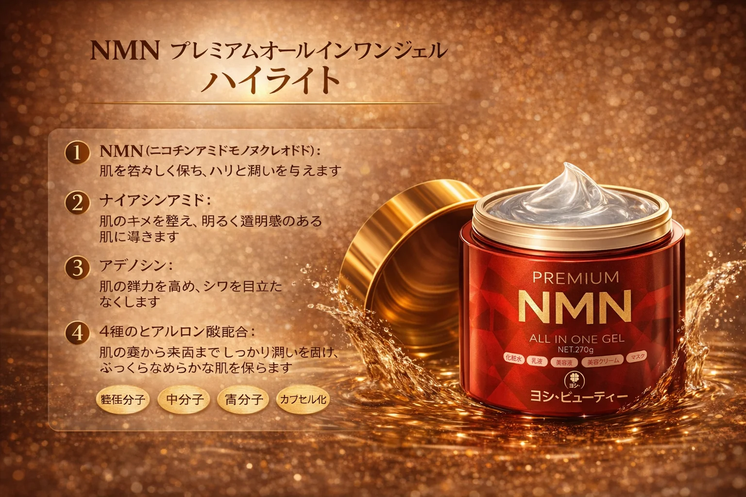 Gel dưỡng da đa năng NMN PREMIUM 270g là giải pháp chăm sóc da toàn diện với 5 chức năng trong 1 sản phẩm: nước hoa hồng, sữa dưỡng, serum, kem dưỡng và mặt nạ. Với sản phẩm này, bạn chỉ cần một bước duy nhất để hoàn tất quy trình chăm sóc da, tiết kiệm thời gian nhưng vẫn đảm bảo làn da luôn mềm mịn, căng bóng và đàn hồi.