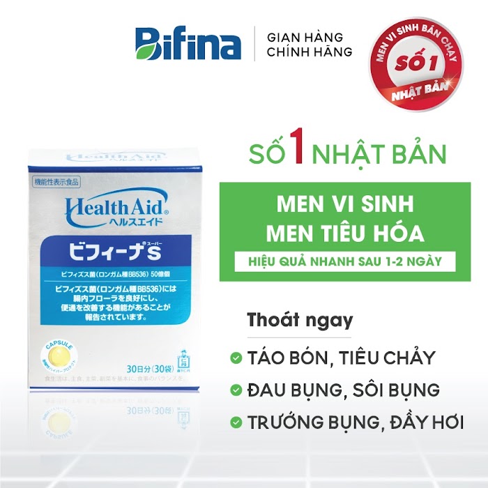 - Bifina – men vi sinh Nhật Bản hỗ trợ ngăn ngừa tối ưu các triệu chứng đầy bụng, khó tiêu, đi phân sống, tiêu chảy, táo bón hay căng thẳng từ các cơn đau bụng kéo dài.