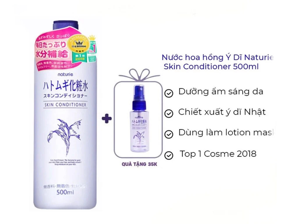 Giới thiệu sản phẩm nước hoa hồng Naturie Hatomugi Skin Conditioner Hạt Ý Dĩ