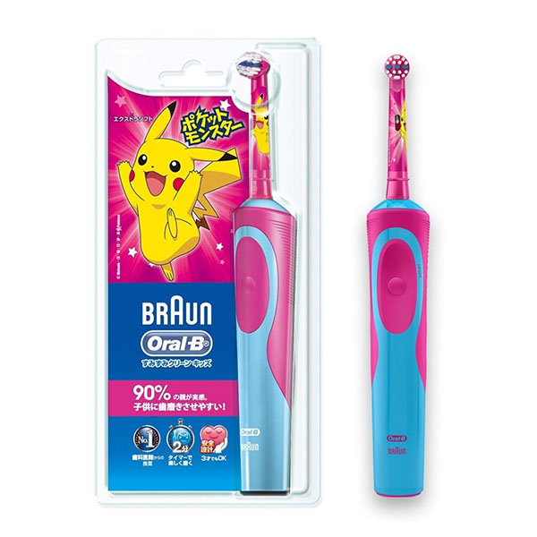 Bàn chải điện cho bé Oral-B thương hiệu của Đức dùng cho cả bé trai và bé gái. Bàn chải điện Oral-B được thiết kế với mặt chải mịn, êm, cùng hàng nghìn vòng xoay giúp chải sạch răng, nướu mà không gây tổn thương hay khó chịu cho bé. Sản phẩm được 90% chuyên gia khuyến nghị sử dụng để vệ sinh răng miệng hàng ngày cho bé yêu, phòng ngừa sâu răng hay các bệnh liên quan đến răng miệng.