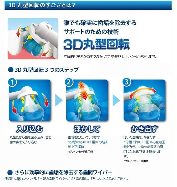 - Công nghệ 2D Action: Thiết kế xoay và rung động hỗ trợ làm sạch răng miệng