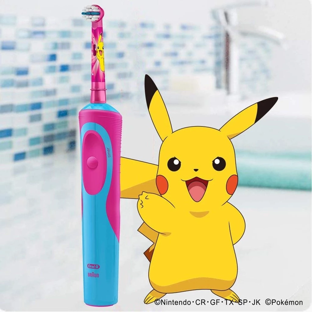 - Bàn chải điện Oral-B hỗ trợ bé chải sạch răng, loại bỏ thức ăn thừa, ngăn ngừa mảng bám.