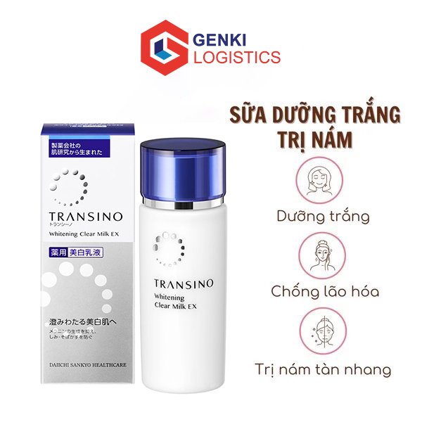 – Sữa dưỡng trị nám Transino Whitening Clear Milk sẽ cung cấp độ ẩm cho da luôn mềm mịn. Tái tạo cho da mới tươi trẻ hơn bằng cách ức chế sự hình thành của hắc tố melamin, đánh bay và ngăn chặn sự hình thành, đồng thời hỗ trợ điều trị nám, tàn nhang đồi mồi, kể cả là các vết nám lâu năm.