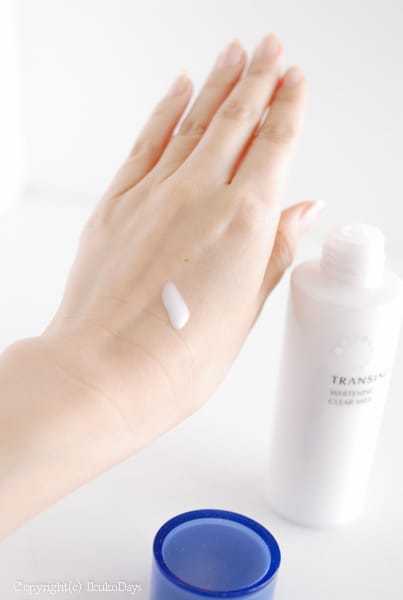 – Bước 2: Thoa kem dưỡng Transino Whitening Clear Milk đều khắp mặt.