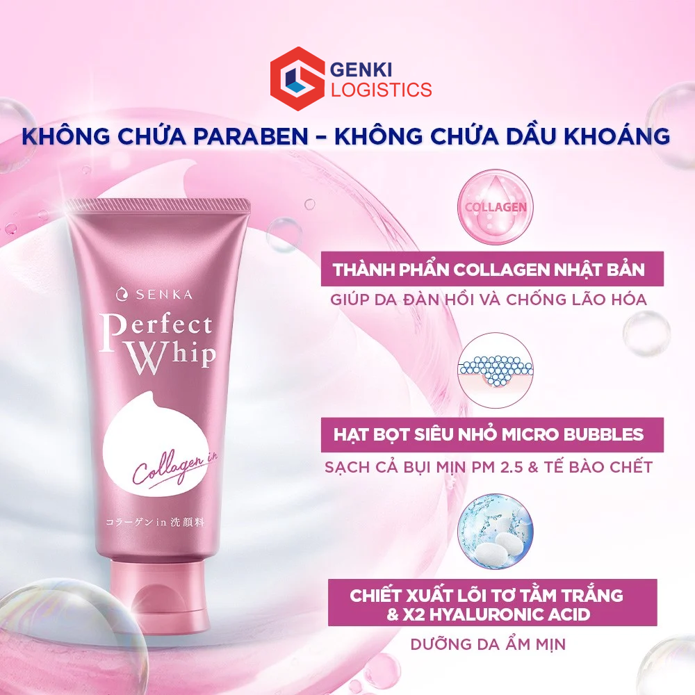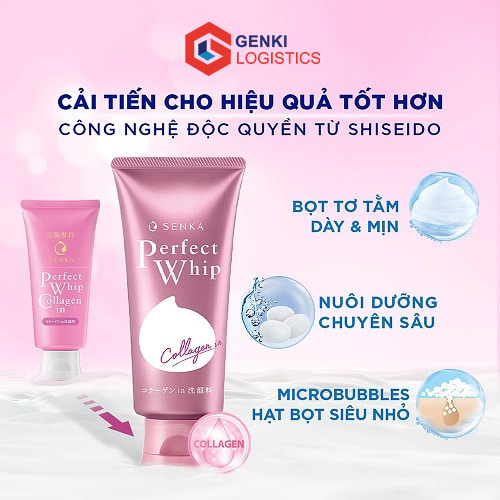 Sữa rửa mặt senka hồng perfect whip Collagen In