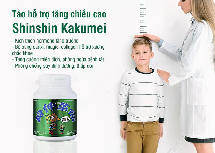 – Không chỉ có các thành phần hỗ trợ tăng chiều cao. Trong viên uống tảo biển tăng chiều cao Shinshin Kakumei còn bổ sung đầy đủ các chất dinh dưỡng cần thiết cho cơ thể. Để phát triển xương thêm chắc khỏe, tránh các bệnh về loãng xương, viêm khớp,…. sau khi về già.- Thành phần dinh dưỡng trong tảo biển tăng chiều cao Shinshin Kakumei giúp kích thích hormone tăng trưởng. Thúc đẩy quá trình phát triển và hình thành xương khớp.- Tảo biển tăng chiều cao Shinshin Kakumei còn giúp tăng cường hệ thống miễn dịch. Phòng ngừa bệnh tật và chống suy dinh dưỡng cho trẻ em.