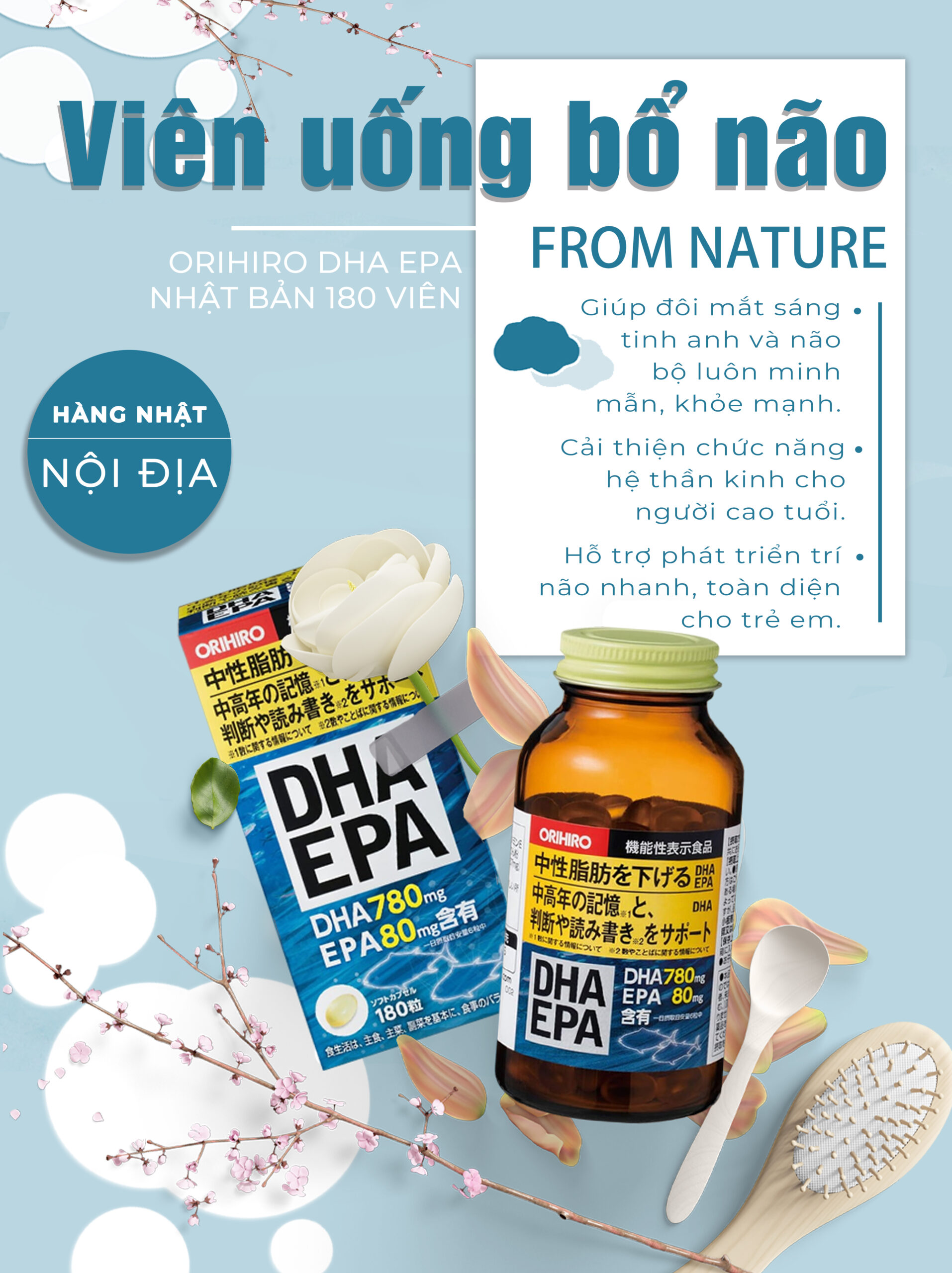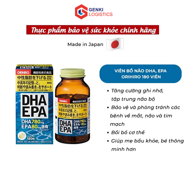 Viên uống dầu cá Orihiro DHA 780mg EPA 80mg Nhật Bản 180 viên – Hỗ trợ trí não, tăng cường trí nhớ, bảo vệ tim mạch