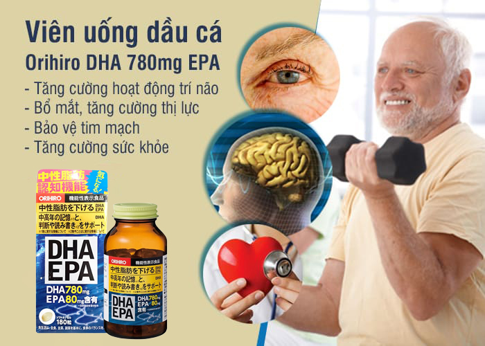 ✔ Viên uống dầu cá Orihiro DHA 780mg EPA 80mg là thực phẩm hỗ trợ trí não, tăng cường nhận thức, trí nhớ cho người lớn tuổi. Ngoài ra, dầu cá Orihiro còn rất tốt cho thị lực, tim mạch, hệ miễn dịch…