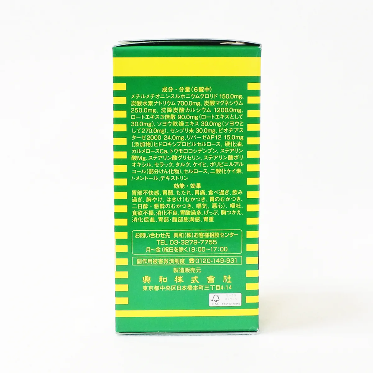 Thành phần khác: Hydroxypropyl cellulose, dầu cứng, carmellose Ca, tinh bột ngô, axit stearic Mg, glyceryl stearate, polyoxyl stearate, cánh kiến đỏ, bột talc, quế, polyvinyl alcohol (saponified một phần), cellulose, silicon dioxide, tinh dầu bạc hà, dextrin.