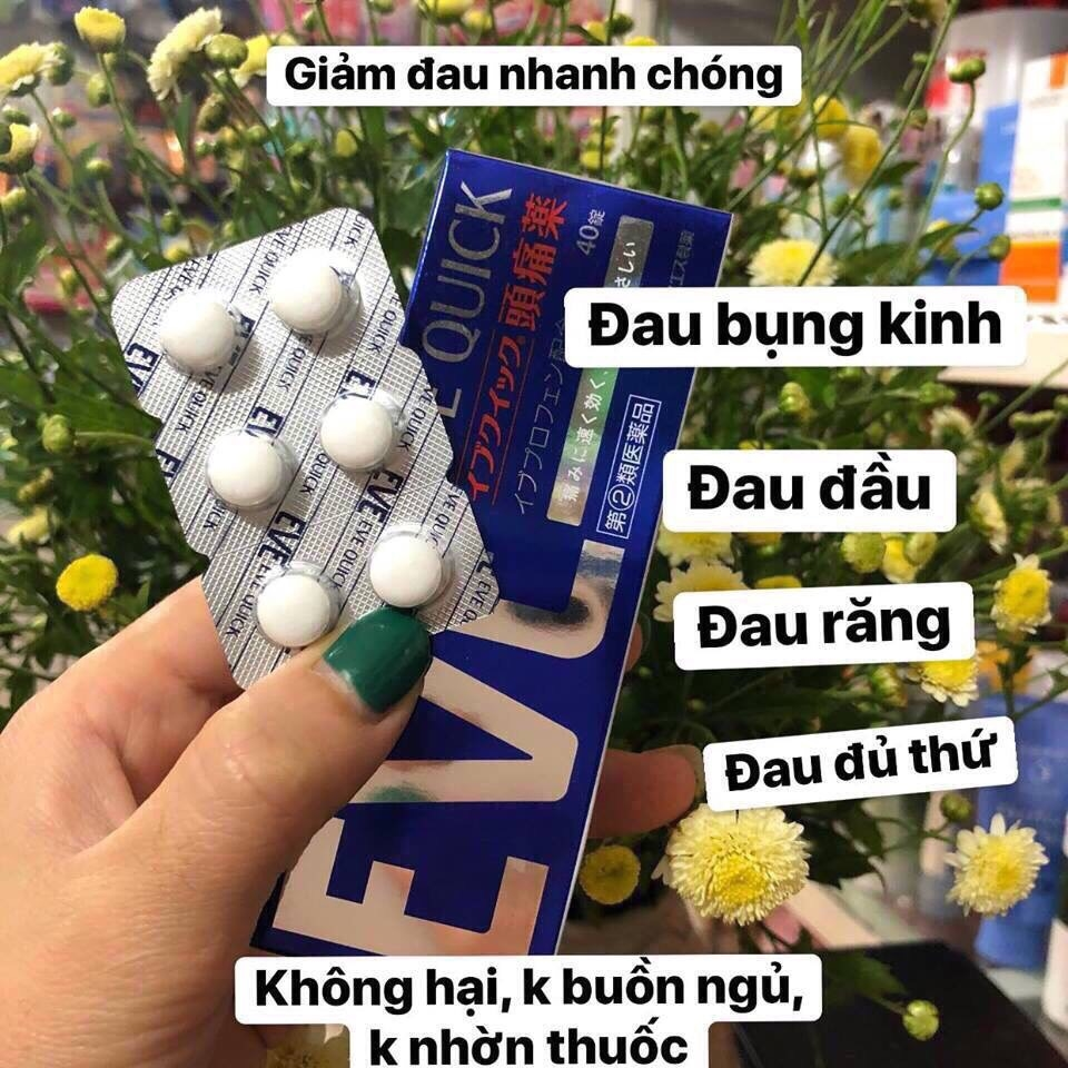 =>> Viên uống giảm đau Eve Quick có tác dụng hiệu quả nhanh, giúp rút ngắn thời gian chịu đau đớn, khó chịu.