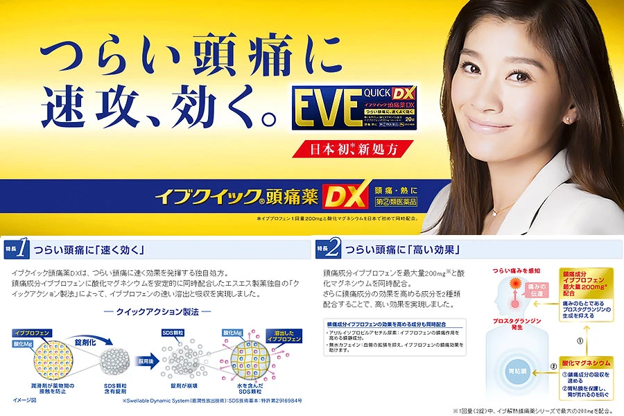 ➤ Tại Nhật Bản, Eve Quick DX chính là giải pháp hàng đầu được nhiều người tin dùng. Sản phẩm chứa thành phần tá dược đã được chứng minh là có tác dụng giảm đau với mọi trường hợp, đồng thời hạ sốt, trị cảm cúm.